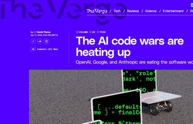 【环球网科技综合报道】4月13日,据外媒 The Verge 报道,AI代码工具正掀起行业变革,OpenAI、谷歌、Anthropic三大巨头的竞争...