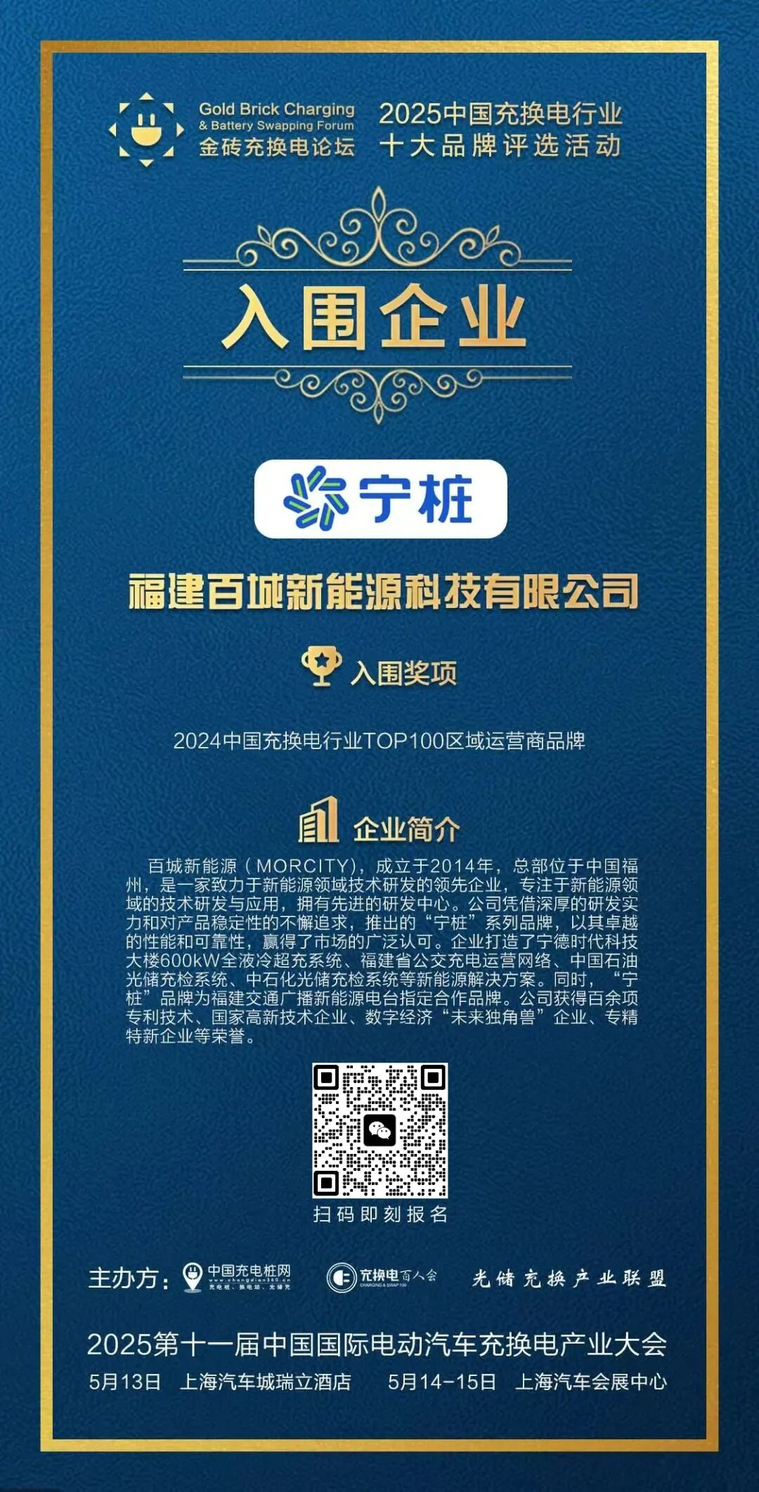 为进一步表彰更多优秀代表企业和人物所做出的卓越贡献,为了给更多的年轻科学家及企业家提供一个学习先进的榜样,由中国充电桩网、充换电百人会、光储充换产业联盟推出:2025 中国充换电行业十大品牌评选,活动简称“金砖奖”。作为中国最权威、专业的充换电品牌评选活动,本次活动将以国际化的视角呈现和挖掘充电领域最具影响力品牌企业,主办方将全力推动充换电产业品牌发展。推动线上投票,线下走访投票,专家综合评审,积极推动品牌评选,以公平,公正,公开原则,选出最具影响力企业代表,最具名族代表性品牌企业。
