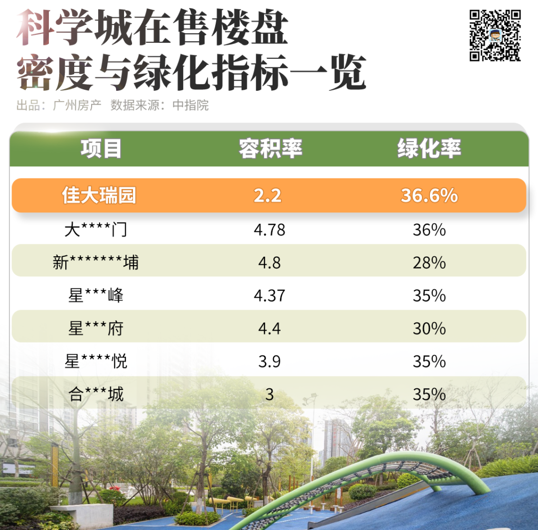 佳大瑞园的容积率只有2.2,在科学城板块,指标处在第一梯队。