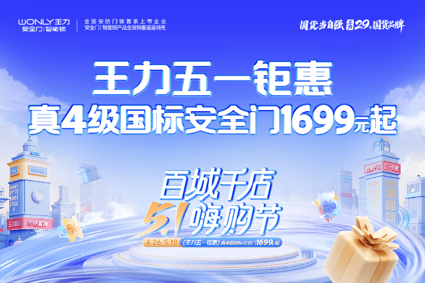 在中国安防门锁行业加速智能化转型的关键时期,国内安防门锁领军企业王力安防迎来“未来工厂”全线打通三周年重要节点。近日,其在全国范围内启动“百城千店-五一嗨购节” 全民安防升级活动,以1699元普惠价推出真4级国标安全门爆款产品,再次突破行业价格底线,不仅推动了高端安防产品的普惠化,更彰显了王力安防智能制造体系在产能与品质上的领先优势。