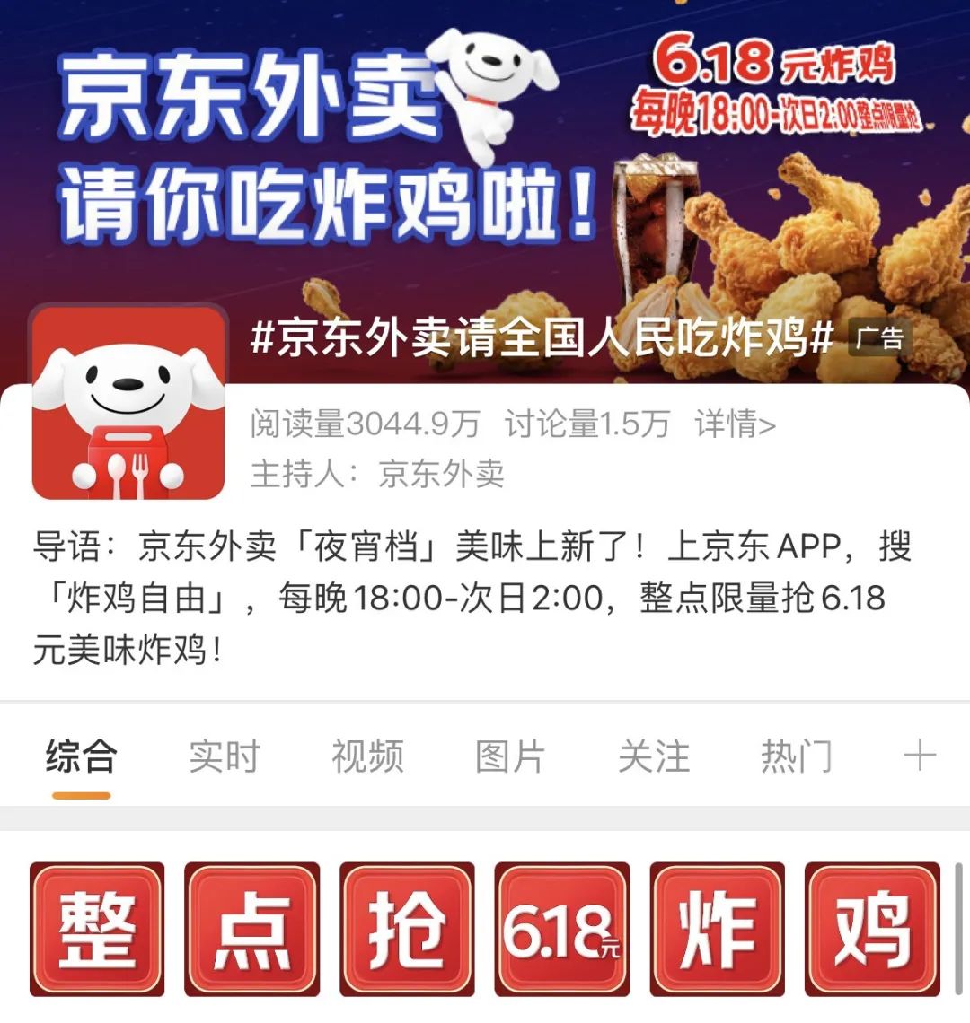 错失奶茶大战的京东立马推出“秋天第一口炸鸡”,通过限时补贴请全国用户享低价炸鸡,可是无人接招,尴尬收场。