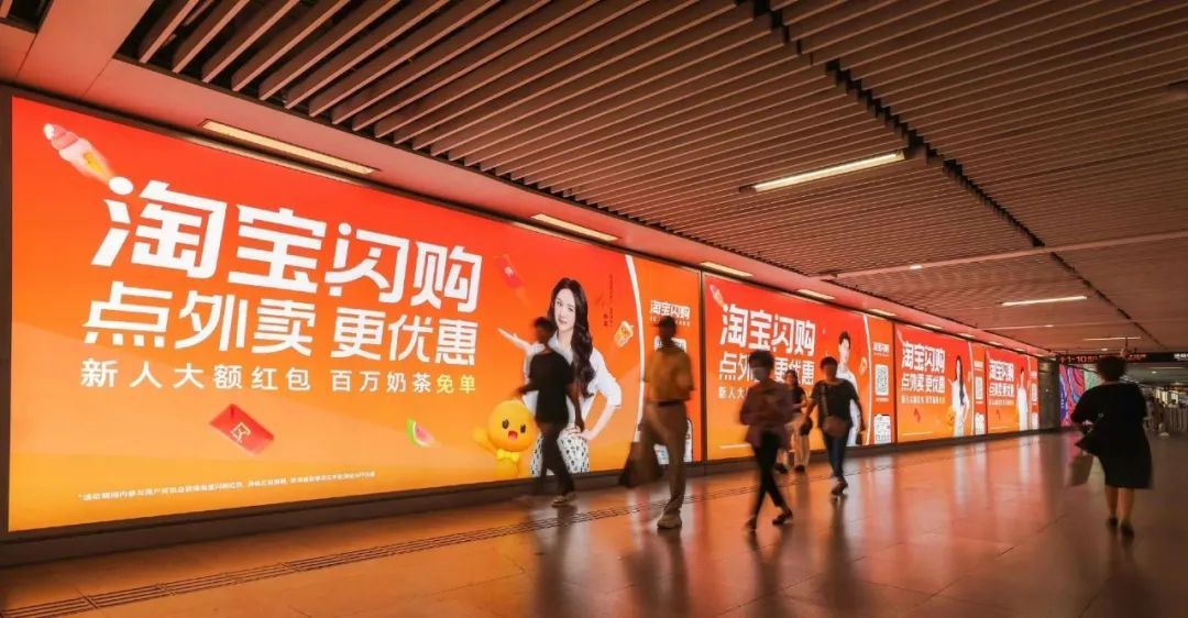 淘宝闪购的明星代言广告,一眼望去满满的橙色,地铁、公交、电梯广告牌……处处是它的踪影,为这个格外炎热的盛夏平添暖色调。