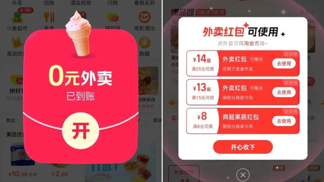 平台在低价冷静期后,开始重构自己的商业图景:不再简单砸红包,而是通过明星引流、兑换、券包等方式,延长外卖大战的红利时期。