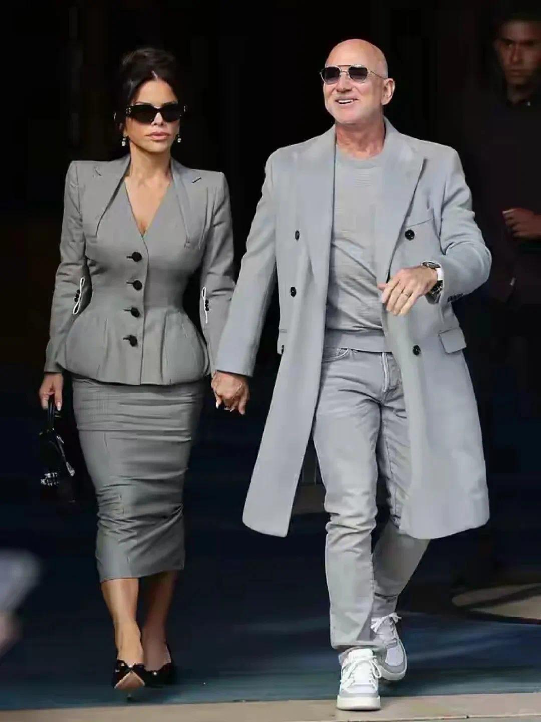 10月巴黎时装周期间,穿过一条1995年春夏系列灰色西装裙套装,X剪裁收腰凹身材的同时,领口、下摆很有设计感,跟贝佐斯配成情侣装也很吸睛。