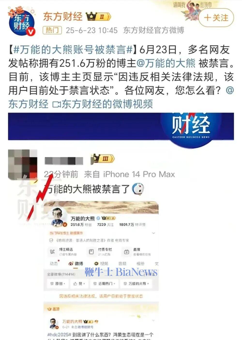 一句话,把米粉的愤怒当成了“小题大做”,把小米的投放当成了炫耀的资本。除了与米粉的深仇大恨,“万能的大熊”本身就是个争议缠身的博主。2024年,他因编造联想与华为对立的谣言,被法院判决公开道歉并赔偿16万余元;2025年6月,他的微博账号因违反相关法规被禁言。