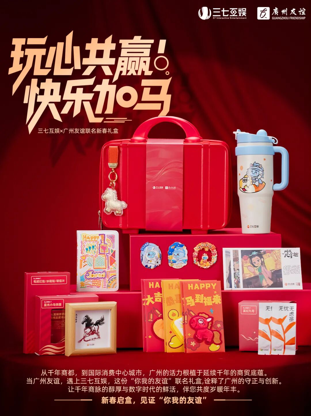2026年三七互娱新年礼盒的主题为《玩心共赢 快乐加“马”》
