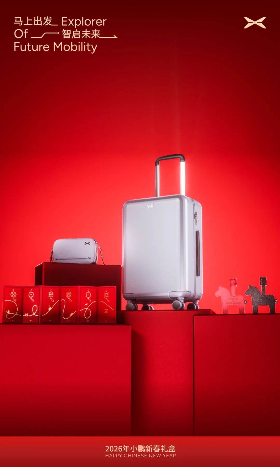 小鹏汽车马年新春礼盒主题为“马上出发,智启未来”。